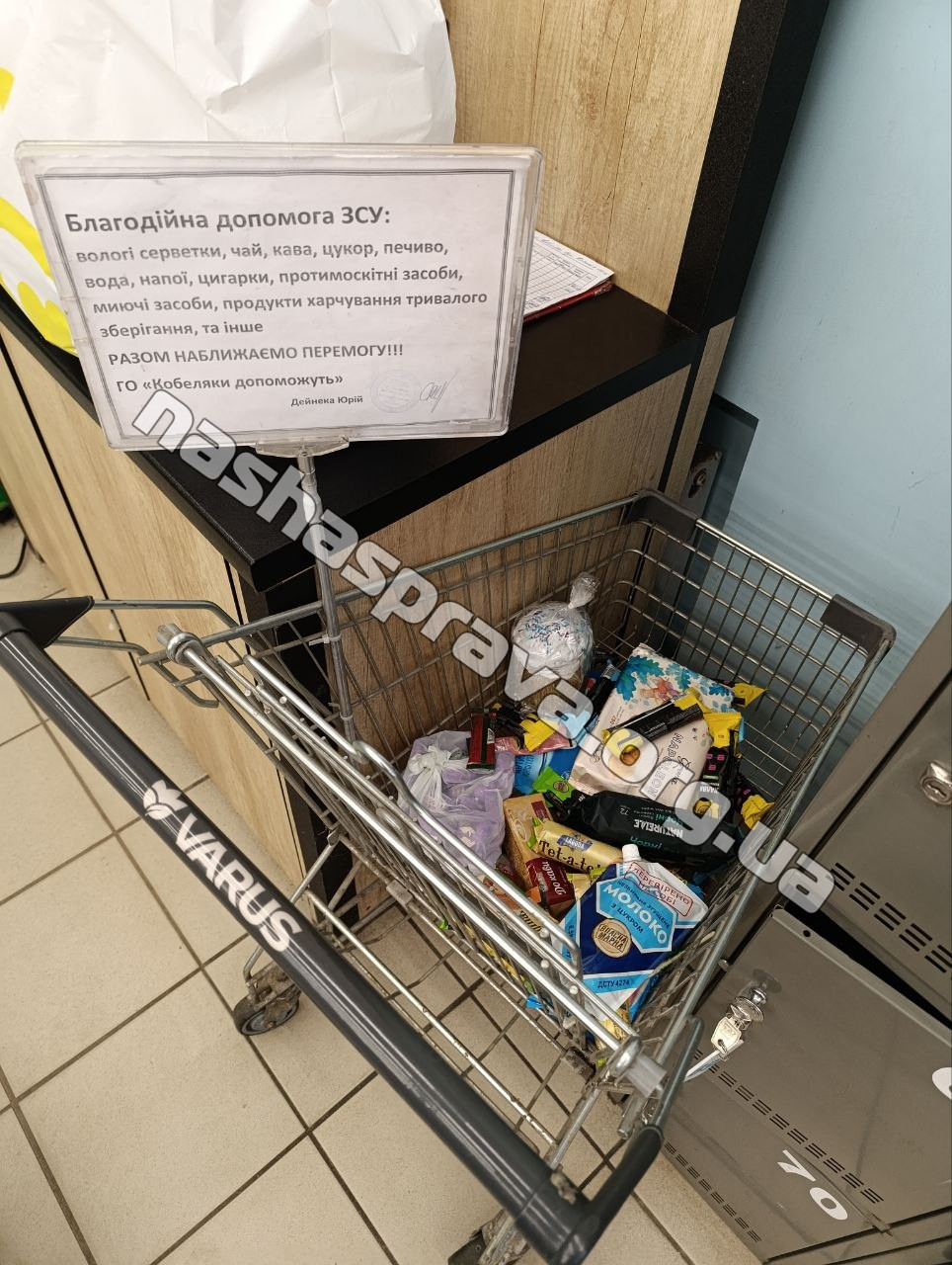 Для бійців 13 бригади «Хартія» наділали: труси, футболки( дякуємо швейній фабриці “Ворскла”), килимки (Бабуся Ліза, любимо!), вологі серветки, кава, чай, печиво, батончики, халва, цукерки (дякуємо всім, хто наповнює наші кошики у Маркетоптах), пряники(ПрАТ Мрія), пасочки (@кобеляцька міська рада і кобеляцький хлібзавод), ліки, медичні системи (скринька аптеки навпроти Маркетопта).