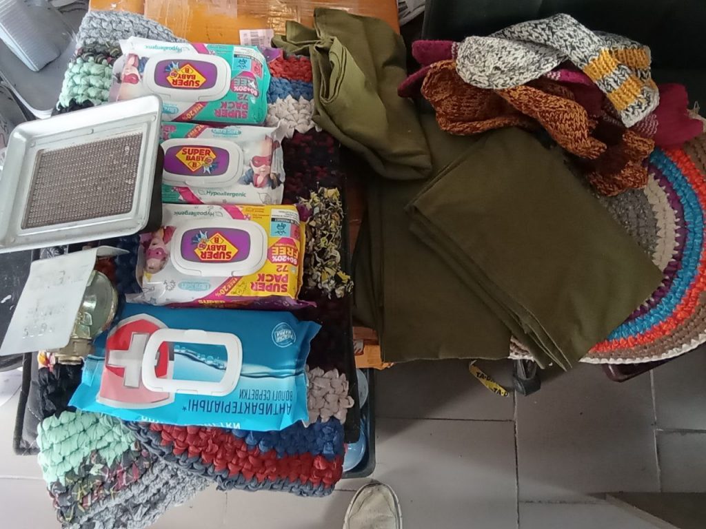 Для медиків з евака, сумський напрямок відправили: балон 8л з конфоркою та обігрівачем, 4 павербанка (зробив наш супермайстер-волонтер), футболки, в’язані шкарпетки, вологі серветки, килимки для сидіння, та трохи смаколиків.
