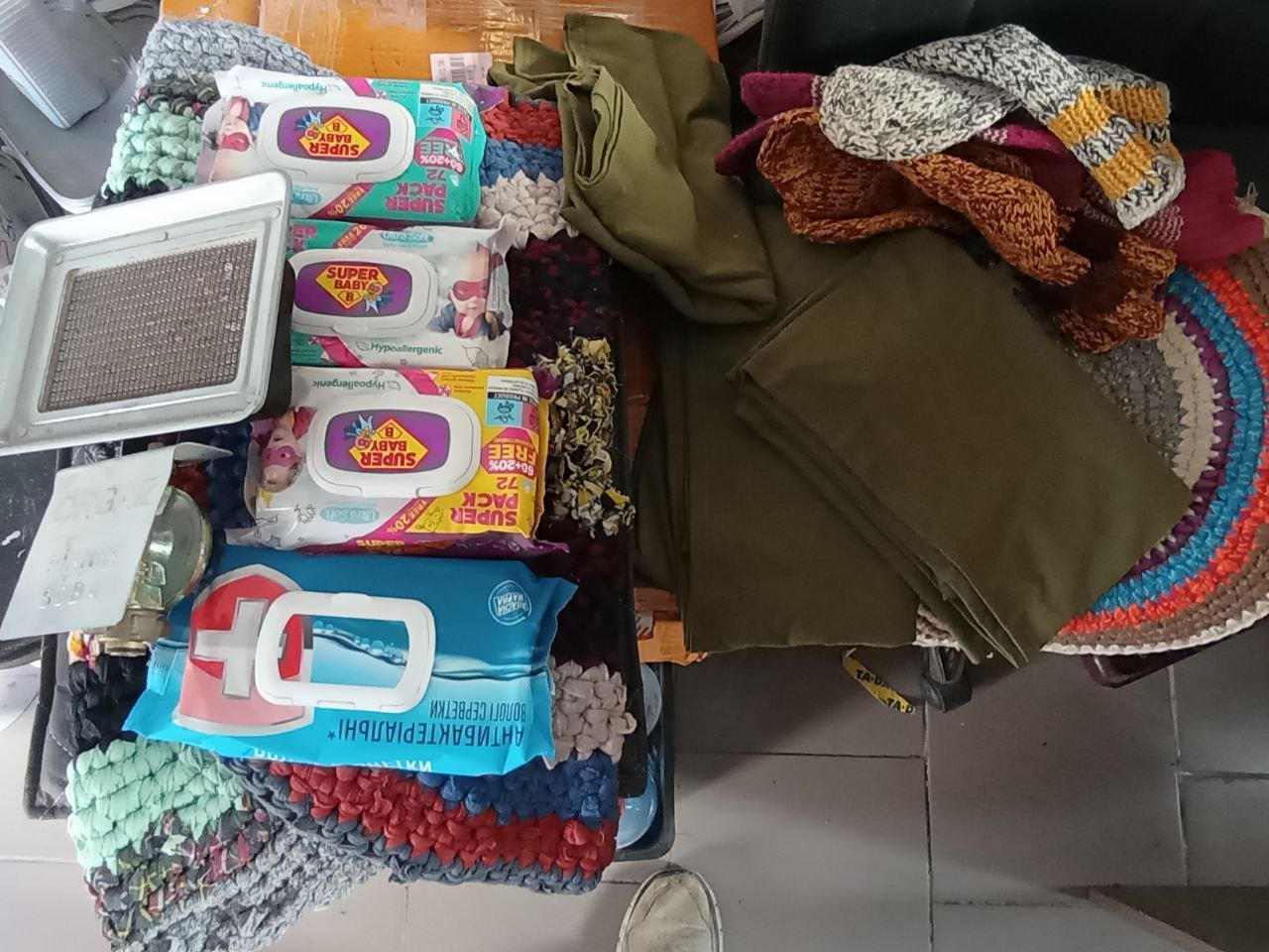 Для медиків з евака, сумський напрямок відправили: балон 8л з конфоркою та обігрівачем, 4 павербанка (зробив наш супермайстер-волонтер), футболки, в’язані шкарпетки, вологі серветки, килимки для сидіння, та трохи смаколиків.
